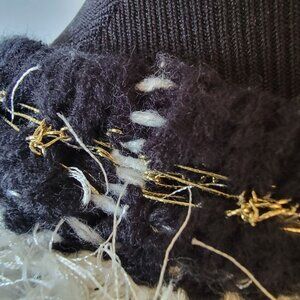 This stylish vintage open-front cardigan offers a soft texture with a fuzzy finish. The black and gold accents provide a sophisticated touch to casual wear.