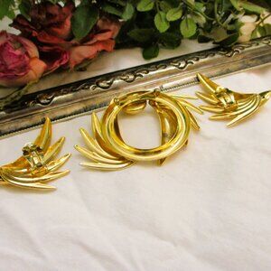 Just an exceptional gift for her, for Mother's Day, for that special event or occasion, or add to your Vintage Jewelry, Designer Jewelry, Haute Couture Jewelry Set, Wing Design Brooch Earrings, Gold Plate French Designer Jewelry, Pearl Gold Wing Design Earrings Brooch Set, High Fashion Brooch Earrings Set, Demi Parure, Designer Clip Earrings, Statement Jewelry Set. or Signed GIVENCHY** Gold Plate Jewelry wardrobe.