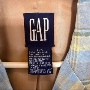 Vintage Gap Blazer Womens Large Blue Yellow Plaid Print Linen 1990s