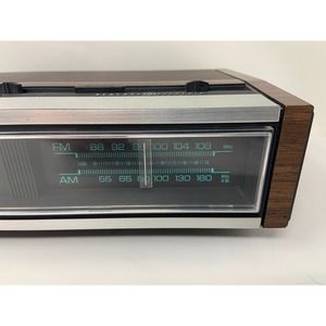 Vintage General Electric Alarm Clock Radio Walnut Wood Finish Tested 7-4685A
