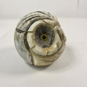 Vintage Genuine Alabaster Marble Owl Head Hand Carved Made in Italy Paperweight
