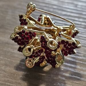 Vintage Gift Wrap Ribbon Bow Red Crystal Gold Brooch