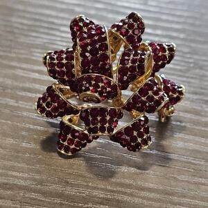 This unique vintage brooch looks like the premade bows you can put on top of presents. Gold base with tiny red crystals. Great brooch to wear on the holidays or any festive occasion. Make yourself the present!