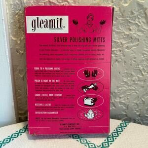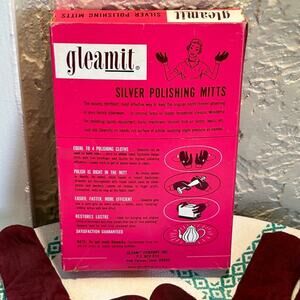 Vintage Gleamit Silver Polishing Mitts in Original Box Used Condition. In nice vintage condition. Mits have been used as seen in the pictures but still have life in them and are a great piece of nostalgia.
