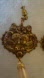 Pierced vintage earrings featuring intricate gold designs with pearl drop accents.