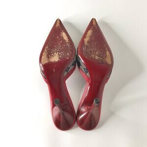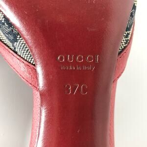 Vintage Gucci D Ring Monogrammed Red Pointed Toe Mules Pumps 37