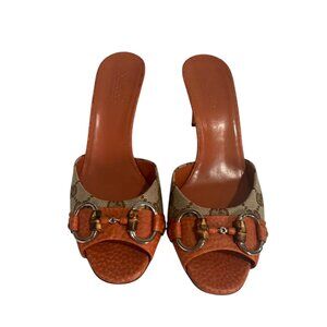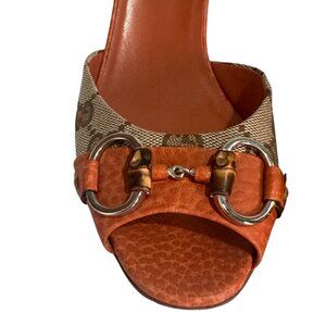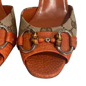 Vintage Gucci Orange Leather Horsebit Bamboo Heels Size 37 US 7