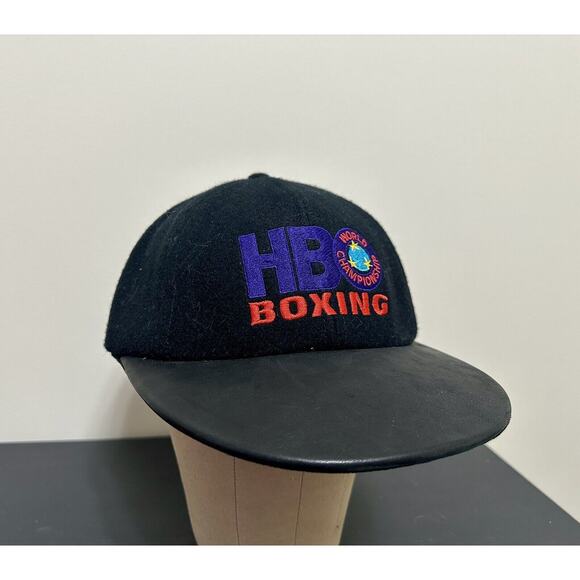 Vintage HBO Boxing Hat Cap Adult Black Wool Roots Sporting Goods Mens New W/ Tag