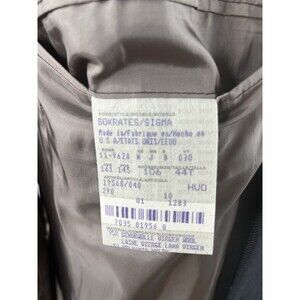 The Vintage Hugo Boss Sokrates Sigma Men's Blazer is a stylish and classic piece made from 100% wool tweed in a sophisticated gray color. This 4-button jacket features a long length, with a shoulder to shoulder measurement of 20 inches and a jacket size of 44. The brand's reputation for quality and craftsmanship is evident in this timeless piece, perfect for any man's wardrobe.