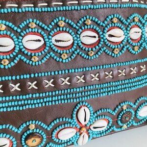 Vintage Isabella Fiore Brown Turquoise Shell Embroidered Bag Just perfect for your summer attire.