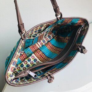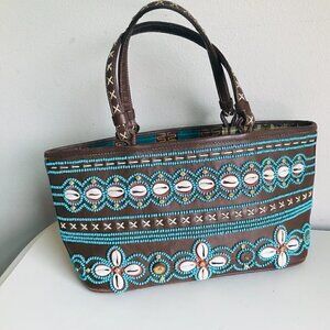 Vintage Isabella Fiore Brown Turquoise Shell Embroidered Bag
