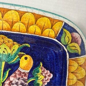 Vintage Italian Handpainted Stoneware Serving Dish Wall Hanging Floral Birds