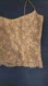 Chic gold lace camisole. Features delicate straps and intricate lace design. Perfect for layering or wearing alone.