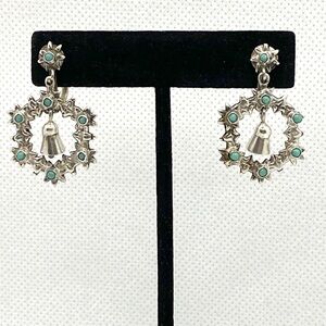 JPL Mexico Wreath and Bells 865 Silver Turquoise Screw Backs Vintage Earrings