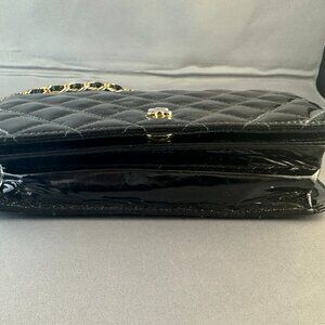 π Glossy black quilted patent leather