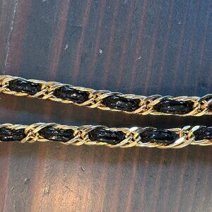 π Gold-tone chain strap interwoven with black leather