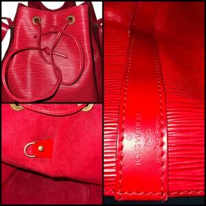 Vintage LOUIS VUITTON EPI LEATHER NOE PM Red Bucket Drawstring Shoulder Bag