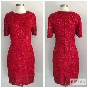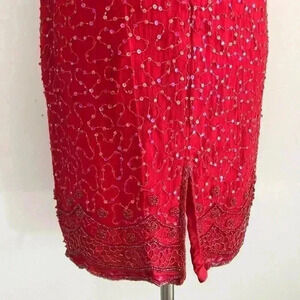 Vintage Laurence Kazar Beaded Silk Red Dress Sz M