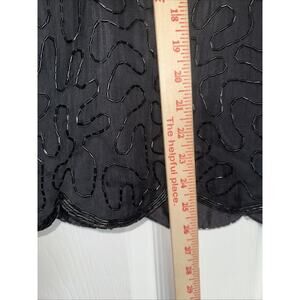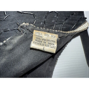 Vintage Lawrence Kazar Sz L Beaded Silk Top Black Gold Silver Embellished Party