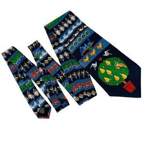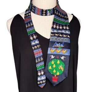 Vintage Lord & Taylor 100% silk 12 Days of Christmas striped tie necktie 4” w