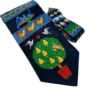Fabulous Vintage Lord & Taylor 100% silk 12 days of Christmas striped tie necktie!