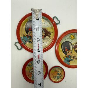 Vintage Lot 4 TIN CHILD TEA SET Plates Bride Groom Pelican Cup OHIO ART