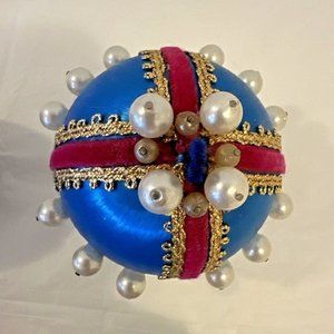 Vintage Lot of 8 Handmade Satin Beaded Crystal 3"+ Push-Pin Christmas Ornaments