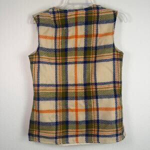 Vintage Loubella 19760s 1970s Vest Skirt Set Wool Plaid Golden Buttons XS Orange