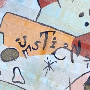 Vintage made in Italy polyester abstract scarf measuring about 34" x 35". Design is "Picasso-like". Washable -- see tag. Pre-owned. No holes or rips. Great colors for fall -- a dark teal like blue, camel, olive green, chocolate brown and black.