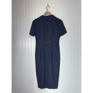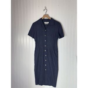 Vintage Maggy London Navy Linen Blend Button Front Midi Dress 8 Cottagecore