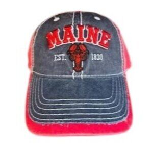 Vintage Maine Red & Blue Embroidered Adjustable Lobster Hat