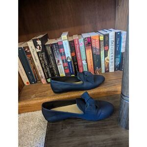 Vintage Mauro Leone Women’s EU 39 US 9 Blue Leather Bow Tie Flats Slip Ons