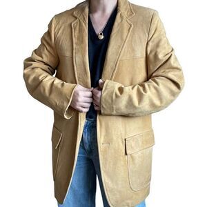 Vintage Mens 1960s Tan Brown Micro Suede Leather Blazer Western Sport Coat Sz L