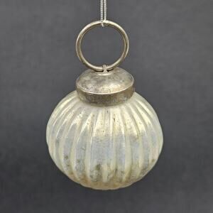 Vintage Mercury Glass Christmas Ornament Ribbed Silvered Holiday Ball 2.5 Inch Round