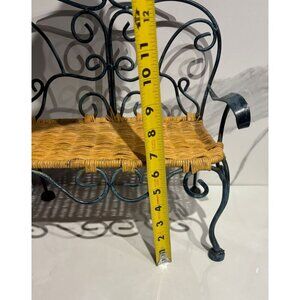 Vintage Metal Wicker Doll Bench Black Scroll Miniature Chair 12" Shabby Chic