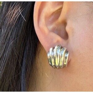Vintage Mexican Sterling Silver Ribbed Dome Earrings 14K Posts Signed BARRA 8.9g