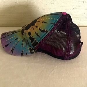 Vibrant cap featuring a silhouette of Mickey Mouse. Eye-catching design with a burst of colors.