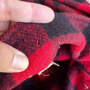 Vintage Minnesota Woolen Heavy Wool Shirt Jacket-Men’s Size Large (approx). Heavy and thick Red and Black lumberjack plaid. Button front closure, with interior reinforced piping. Good vintage condition with some wear from normal use and age. It is missing the buttons from the sleeves and the bottom of shirt. It has (2) small holes in the sleeve cuff and collar that are not outwardly noticeable. This measures as a Large. Size tag is worn-see measurements for best fit.