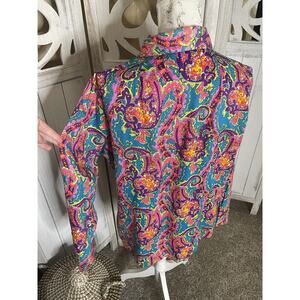 Vintage Miss Holly Women's Button Up Sz 42 Psychedelic Festival Hippie Floral