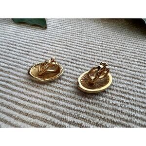 The perfect vintage piece for your jewelry box! This is a pair of small, cute, 1980s/90s black and gold clip-on earrings. These were found at a New Milford market sale and will add some serious style to any look. These feature gold geometric lines on a black background.. These will make a unique gift for any Vintage lover and can easily be converted to pierced earrings.