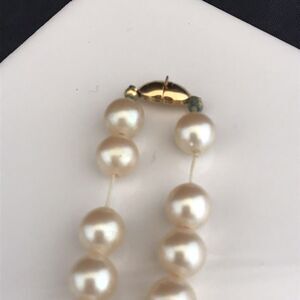 It measures approximately 28 inches. Verde gris and some space between beads was noted near the clasp. See photos. Final Sale. Price Reflects.