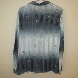 Vintage Mr Jan Leisure Shirt sz L Point Collar Made in California Stripe Disco. Design is striped with small leaves
