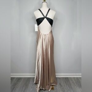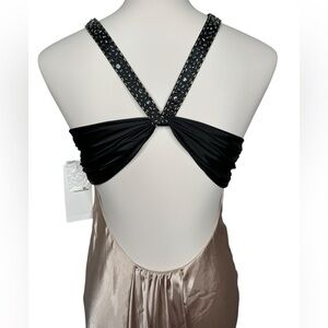 Vintage NWT Adrianna Papell Champagne Black Asymmetrical Neckline Gown Dress