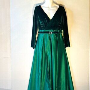 Gorgeous Kelly Green, Velvet long sleeve bodice with a full satin skirt