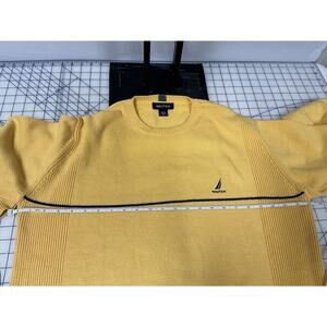 Vintage Nautica Sweater Mens Large Yellow Long Sleeve Crew Neck Cotton Pullover