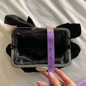 Gorgeous vintage evening bag from Neiman marcus. Black velvet with large satin bow and rhinestone closure. Has hooks for strap but does not come with. Shows a little wear inside but overall great shape