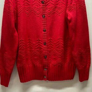 North Crest Classic Cardigan Sweater Women's Large 14-16 Red Holiday Vintage GUC