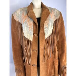 Vintage PIONEER WEAR 70s Suede Fringe Jacket made in USA size medium to large