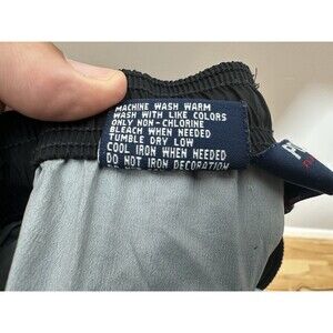 The Vintage POLO SPORT RALPH LAUREN Nylon Track Pants in Black, Size Large, embody the style of the 90s and 00s with a solid pattern and drawstring closure. Made of 100% Nylon, these track pants are machine washable and feature a reversible design, making them versatile for various occasions such as travel, activewear, casual outings, and workwear. The retro design with a touch of American sports theme, along with the waterproof feature, makes them a stylish and functional addition to any wardrobe for the winter, fall, and spring seasons.