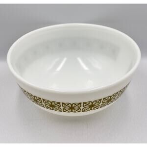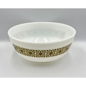 Add a touch of vintage charm to your kitchen with this delightful PYREX 404 mixing bowl! This bowl features a cheerful Verde Autumn Floral or Green Square pattern on a crisp white glass, perfect for adding a pop of color to your baking and cooking.
